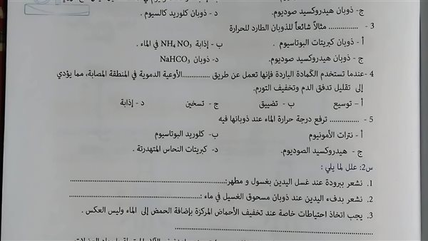 أسئلة تقييم الوزارة لـ الأسبوع الأول العلوم ثانية اعدادي
