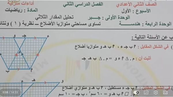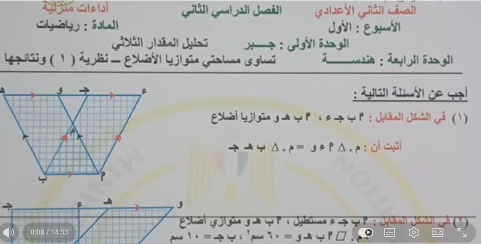 - الصف الثاني الإعدادي الرياضيات ترم ثاني