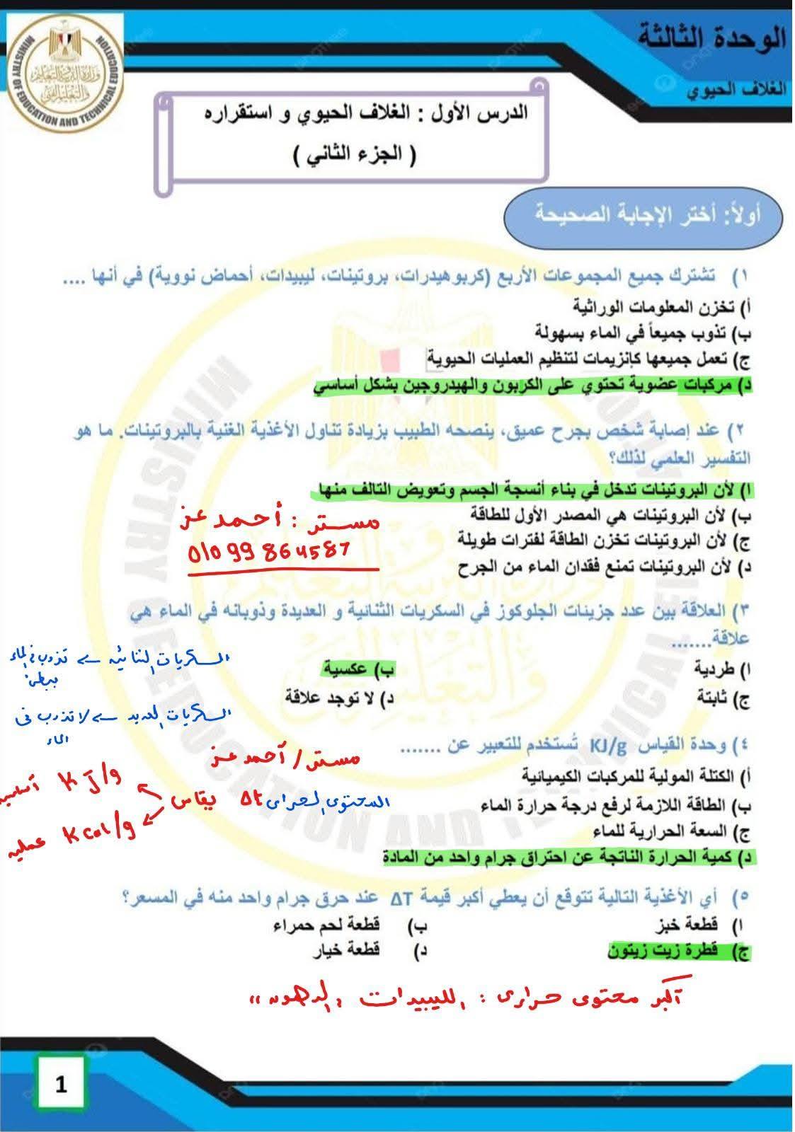 - الصف الأولى الثانوي العلوم المتكاملة ترم ثاني