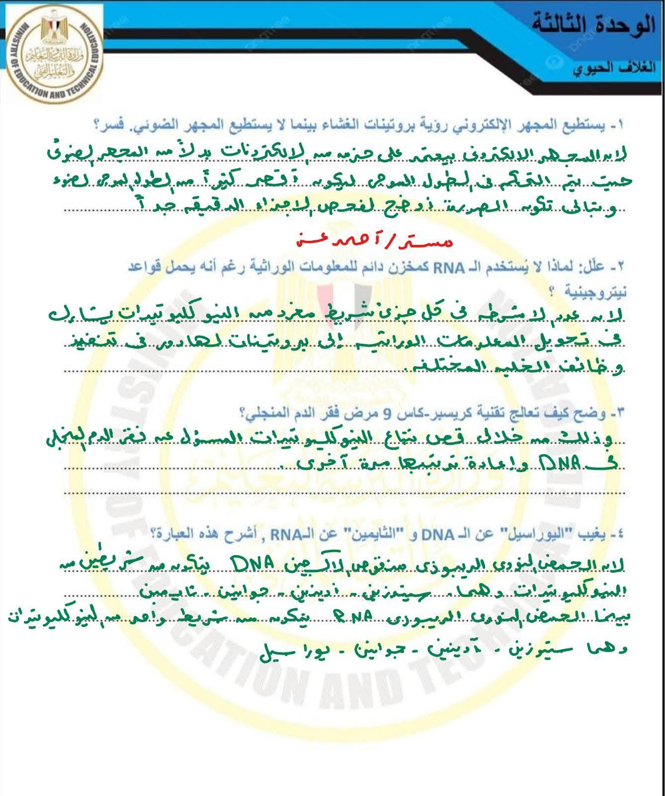 مراجعات نهائية.. حل أسئلة تقييم الأسبوع الأول العلوم المتكاملة أولى ثانوي ترم ثاني