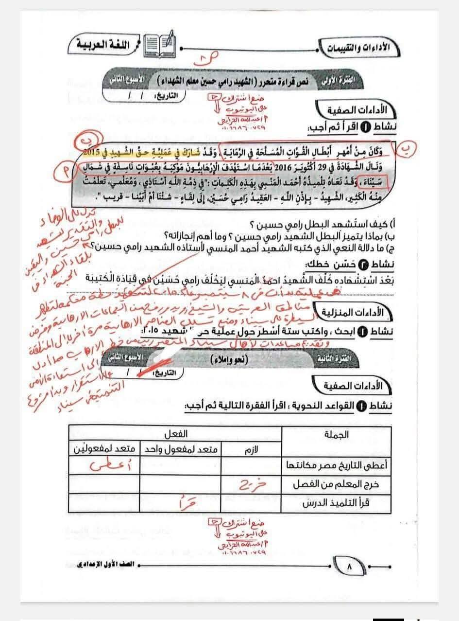- الصف الأول الإعدادي اللغة العربية ترم ثاني