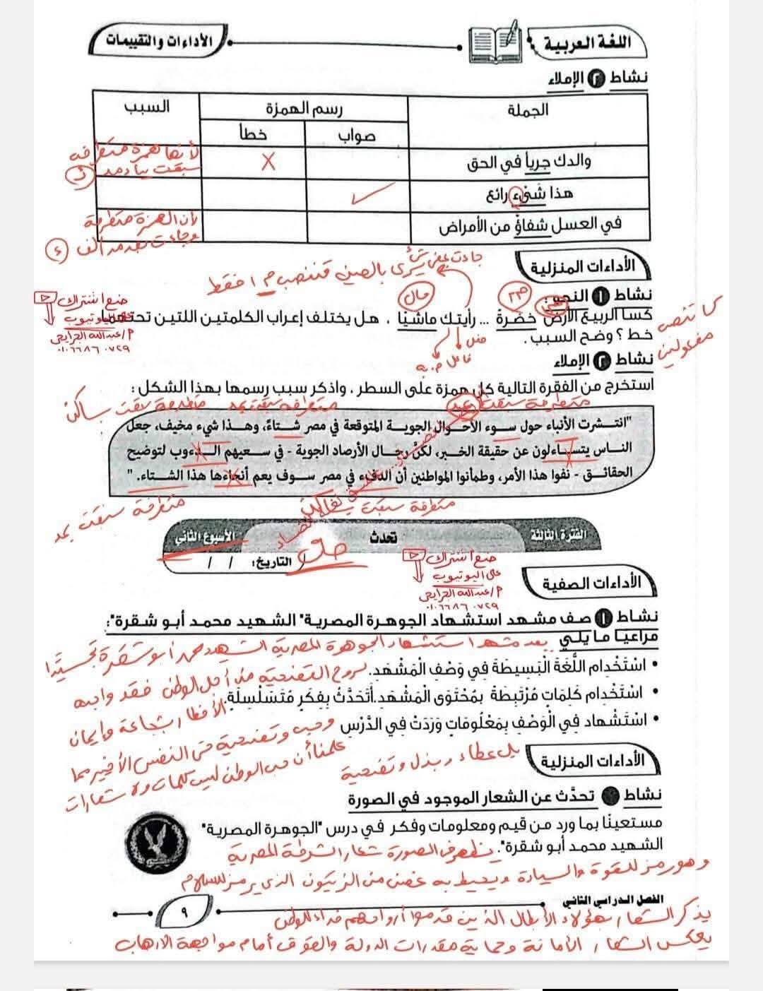 - تقييم الأسبوع الثاني لغة عربية ترم ثاني
