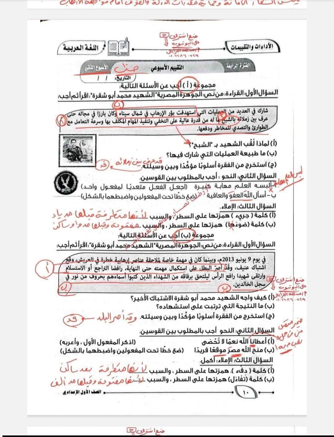 - مراجعات نهائية الصف الأول الاعدادي عربي ترم ثاني