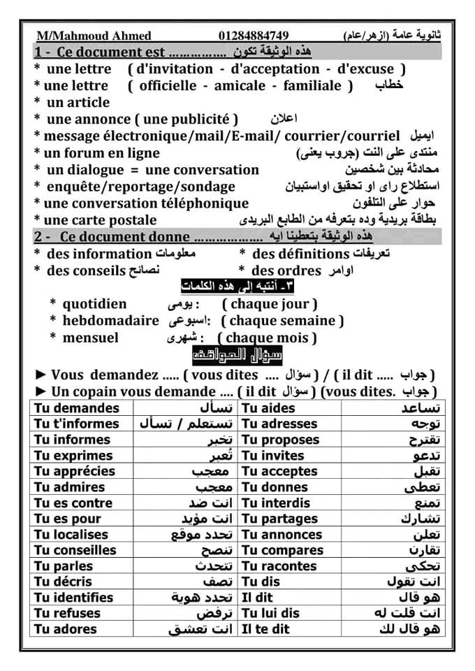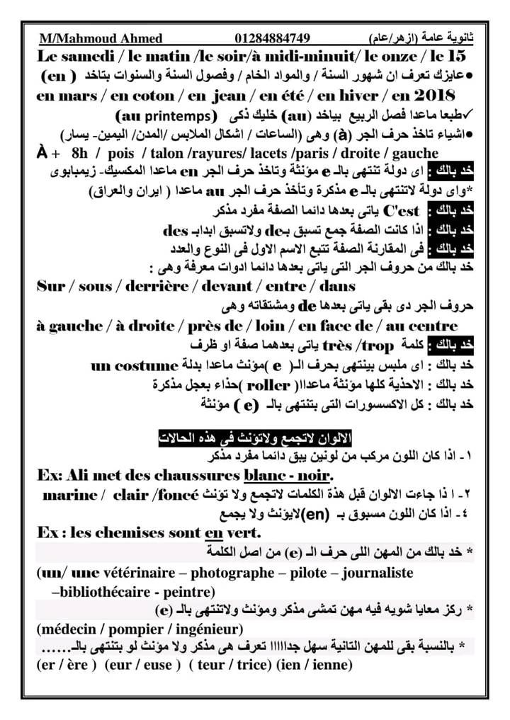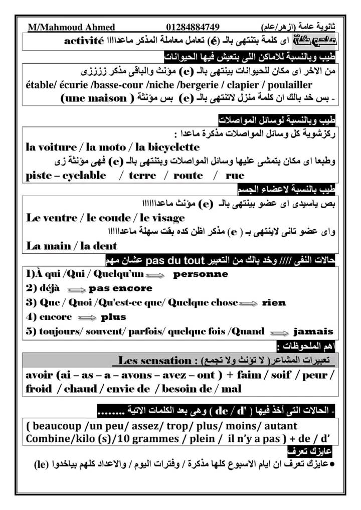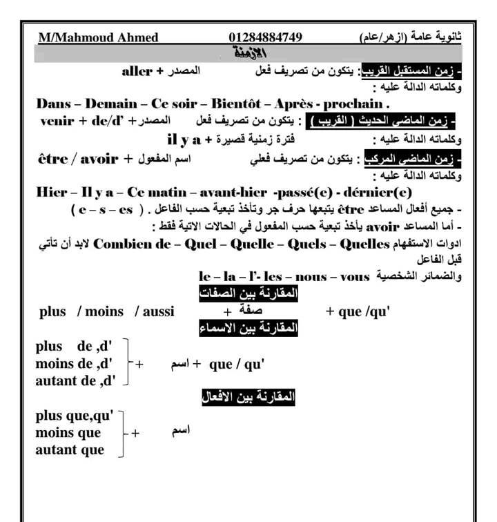 - اللغة الفرنسية مراجعات نهائيه الثانوية العامة