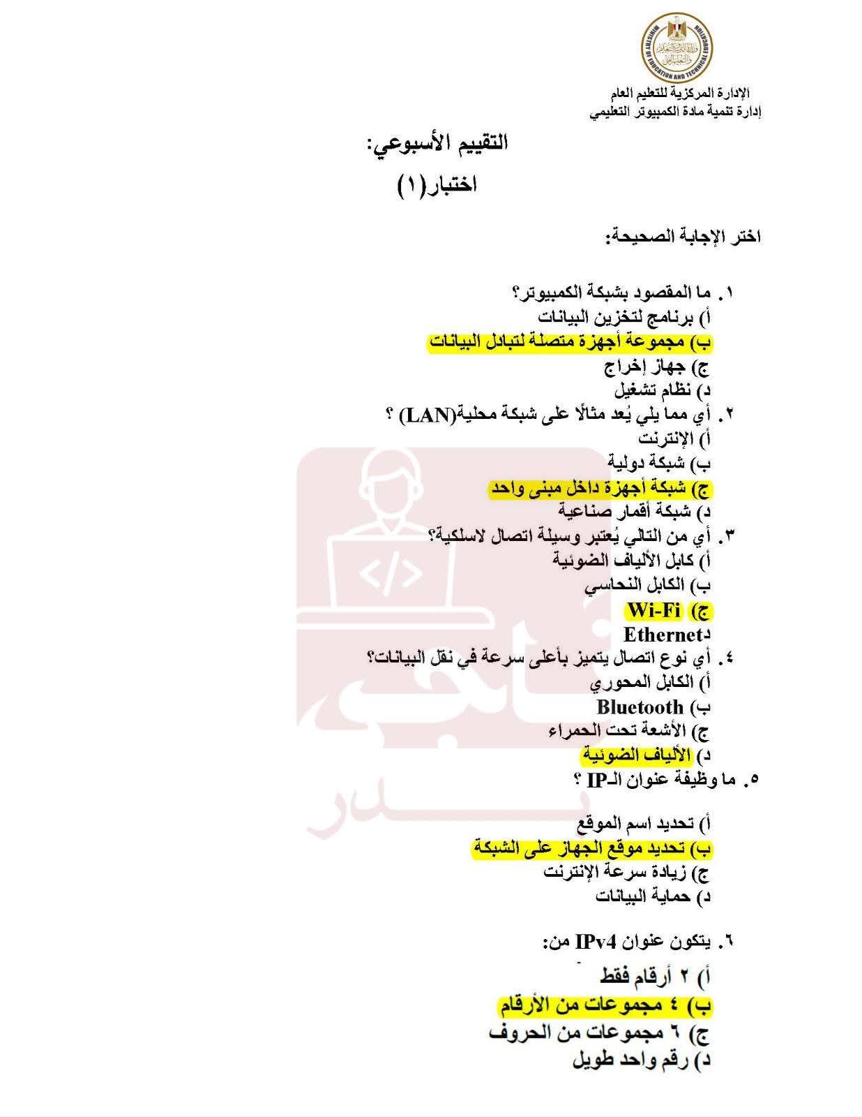 - التقييم الأسبوعي البرمجة والذكاء الاصطناعي أولى ثانوي