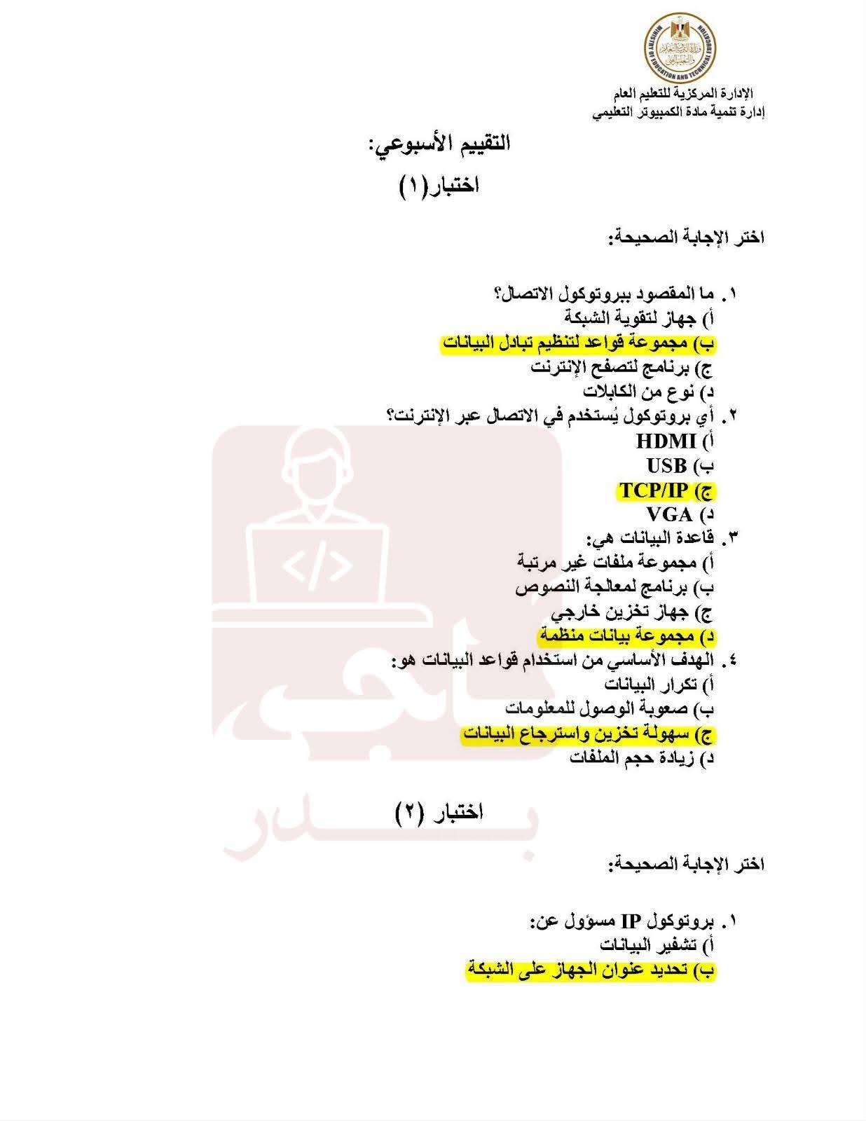 مراجعات نهائية.. حل التقييمات الأسبوعين الأول والثاني في البرمجة والذكاء اصطناعي أولي ثانوي