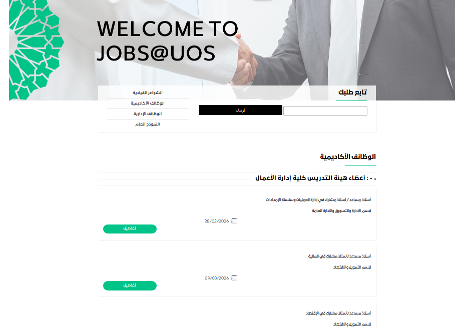 أستاذ مساعد أو أستاذ مشارك في الاقتصاد بقسم التمويل والاقتصاد، وآخر موعد للتقديم 9 مارس 2026.