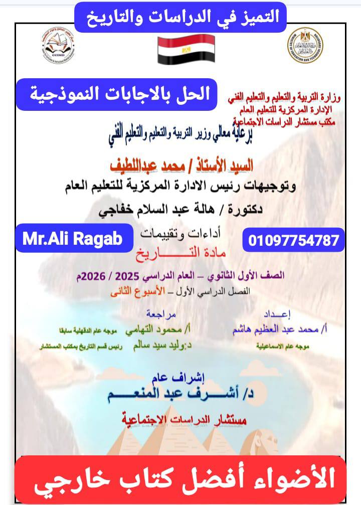- امتحان تاريخ أولى ثانوي الأسبوع الثاني الترم الثاني