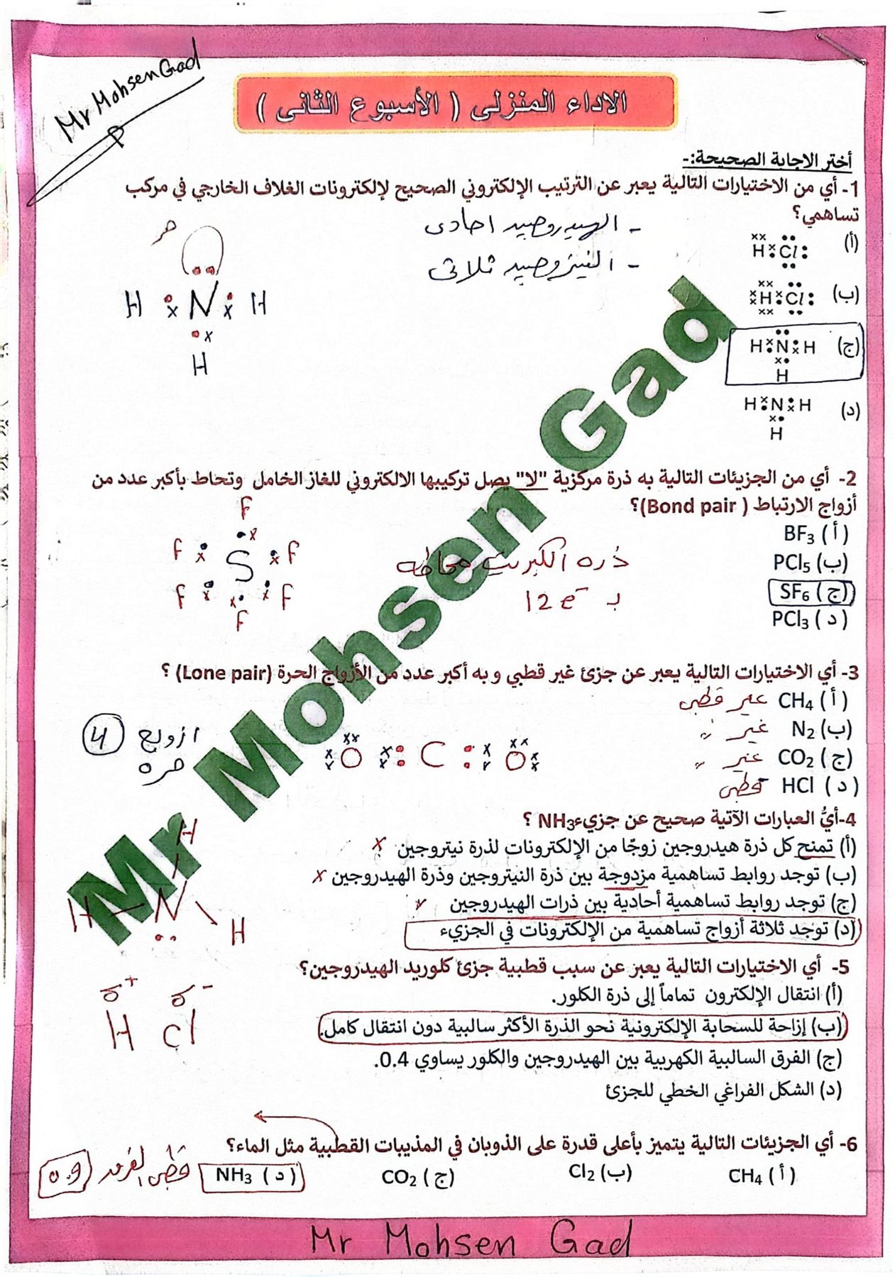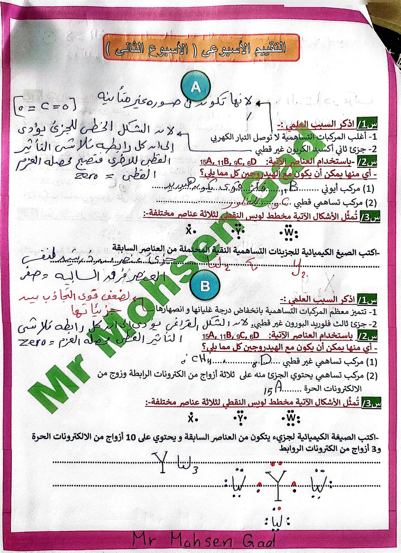 - أسئلة تقييمات الأسبوع الثاني الكيمياء بالاجابات