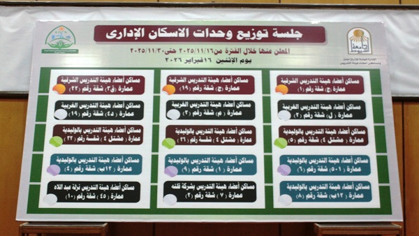 تؤكد جامعة أسيوط أن تخصيص وحدات الإسكان الإداري يأتي ضمن جهودها المستمرة لدعم الاستقرار السكني لأعضاء هيئة التدريس وتعزيز بيئة العمل الأكاديمي والبحثي، بما يعكس التزام الجامعة بمبادئ الشفافية والكفاءة المؤسسية.