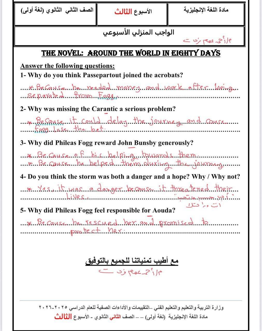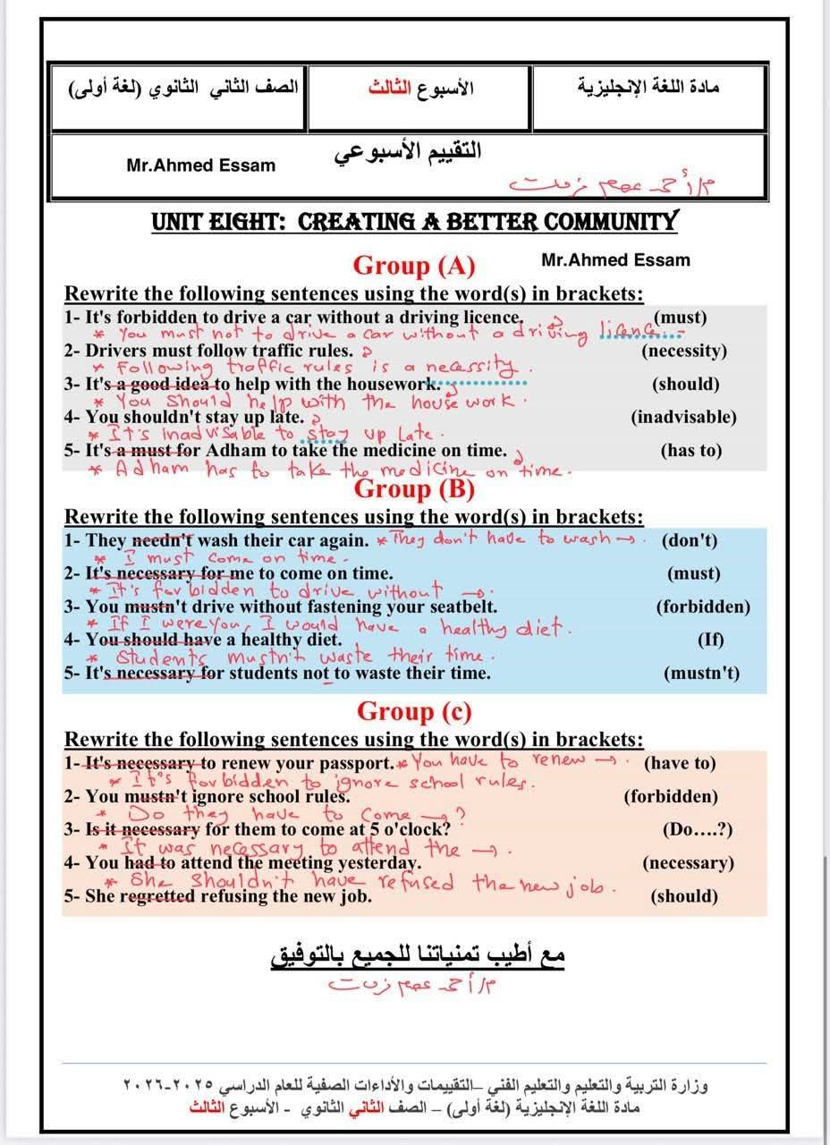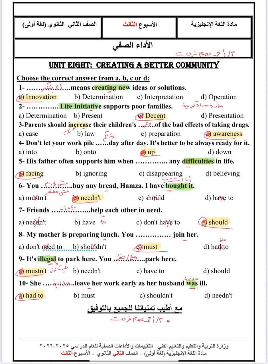 حل أسئلة تقييمات الأسبوع الثالث اللغة الإنجليزية ترم ثاني.. وتحميل أقوى أسئلة تقييم الأسبوع الثالث، تضمن لك دخول الامتحان وهو في جيبك، لطلاب وطالبات الصف الثاني الثانوي، من خلال امتحانات مادة اللغة الإنجليزية، تضمن لك مراجعات نهائية في منهج الفصل الدراسي الأول، والتى تعد مرجعا أساسيا في مراجعات نهائية، لمقرر المنهج الدراسي للعام الدراسي الجاري 2025-2026، أعدها خبراء المادة في وزارة التربية والتعليم، من أجل مراجعات نهائيه لطلاب الصف الثاني الثانوي.