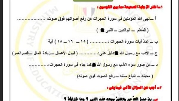 لطلاب الثاني الثانوي.. أسئلة تقييمات الأسبوع الثاني التربية الاسلامية ترم ثاني