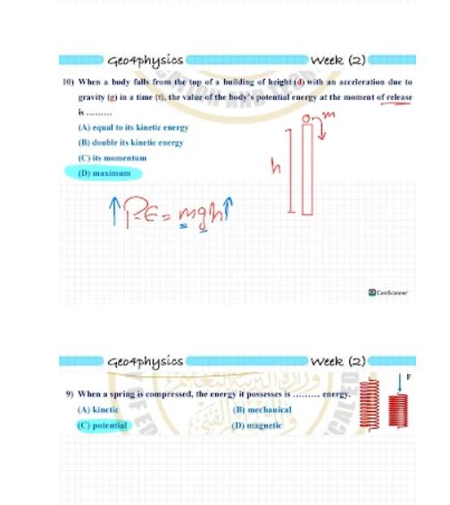 مراجعات نهائية أسئلة تقييم الأسبوع الثاني الفيزياء لغات