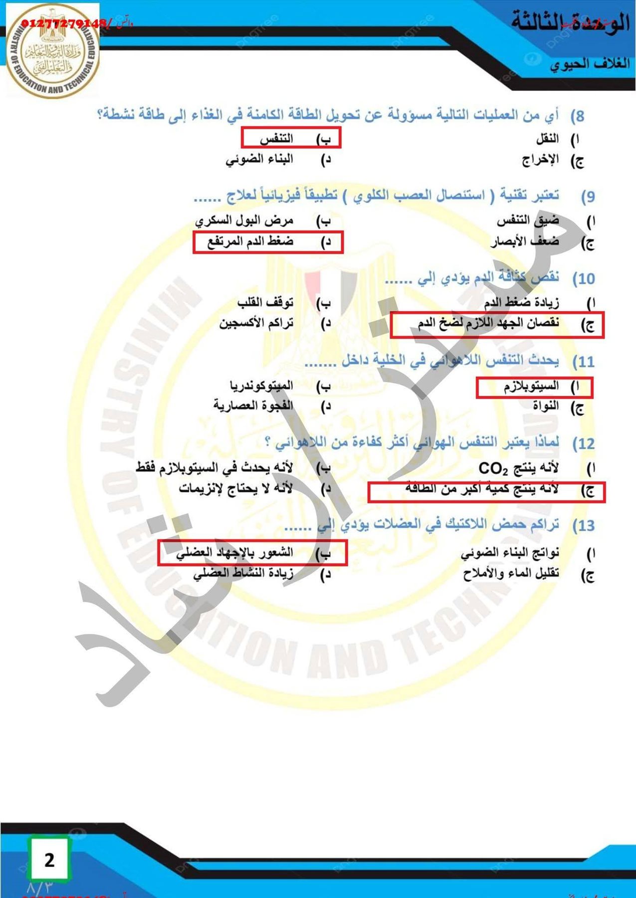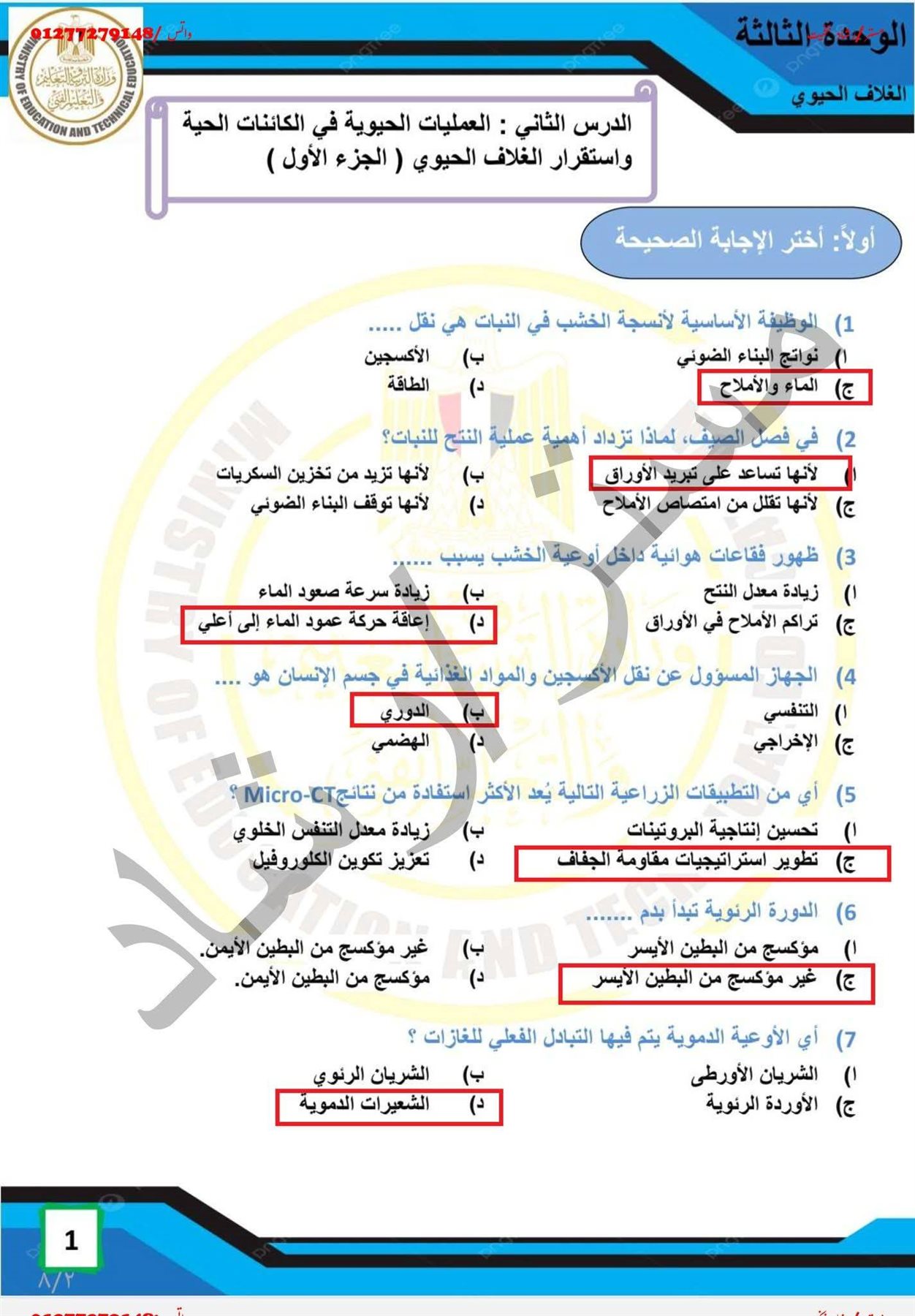 - الصف الأولى الثانوي العلوم المتكاملة ترم ثاني
