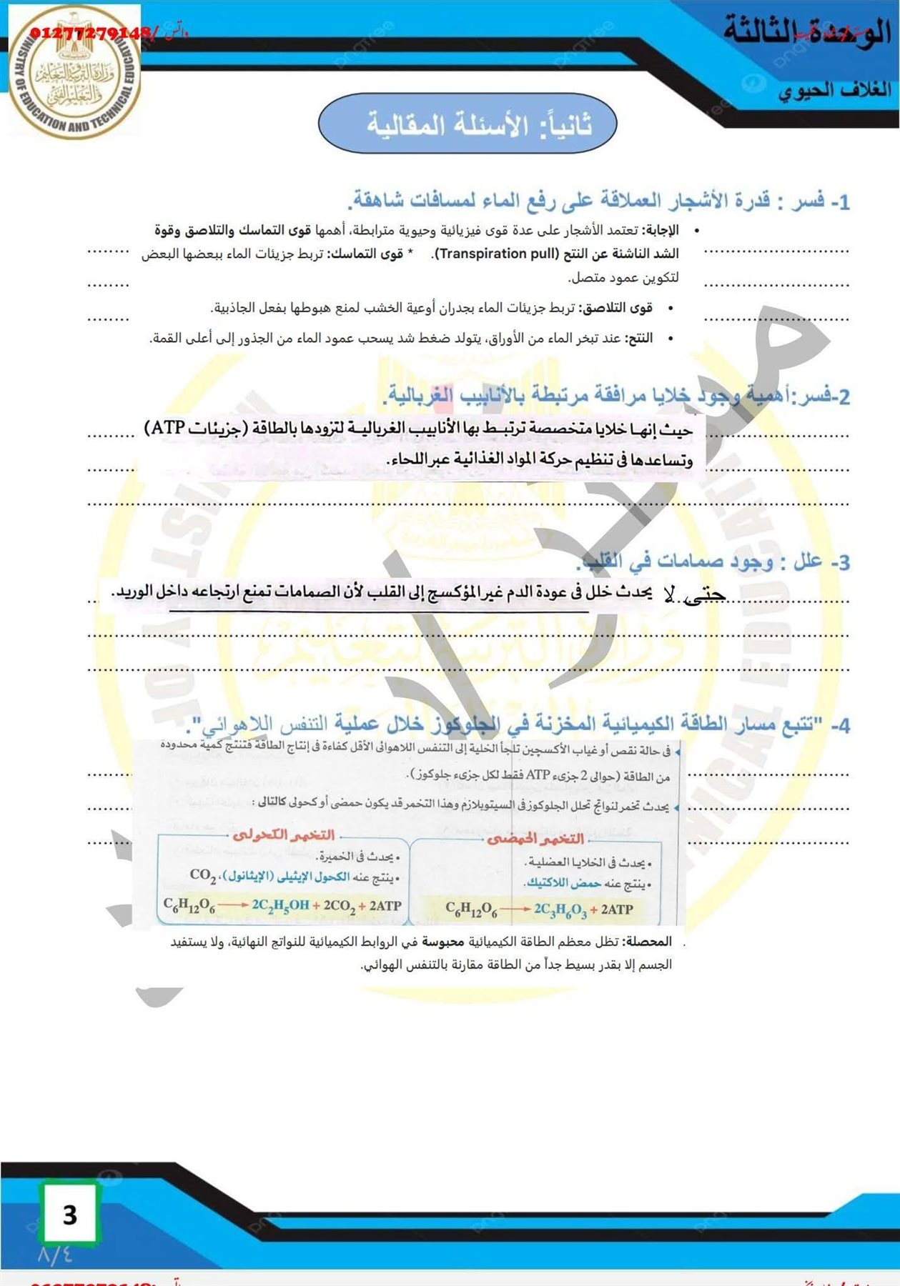 - اجابات تقييم الاسبوع الثالث علوم متكاملة عربي 2026 الترم التاني