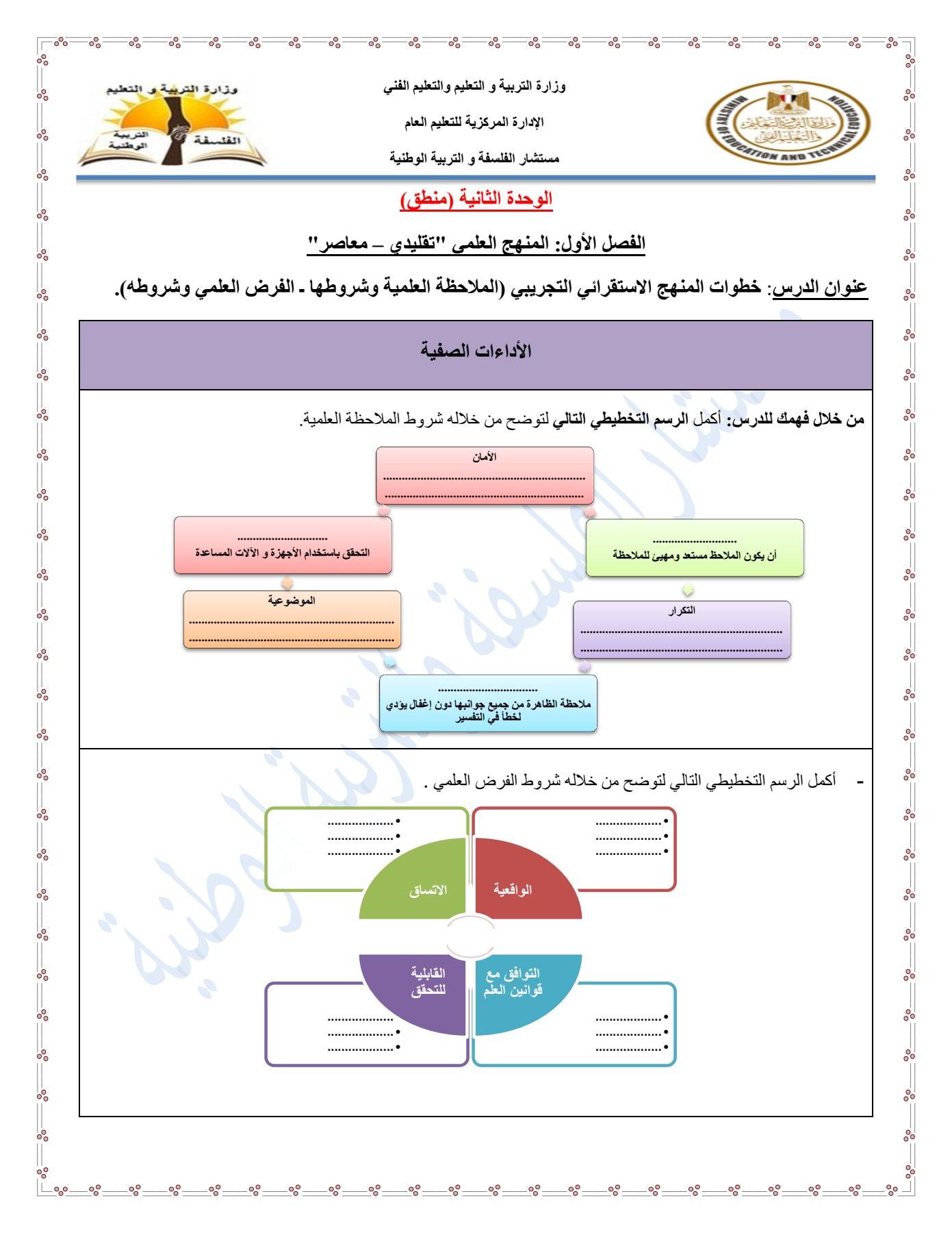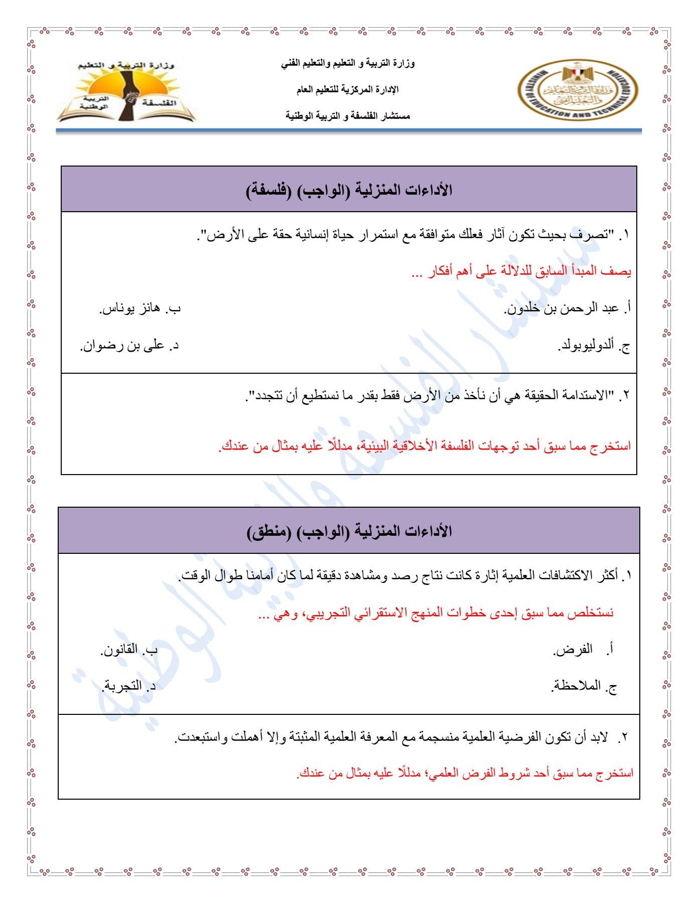 - مراجعات نهائيه امتحان الفلسفة والمنطق أولى ثانوي