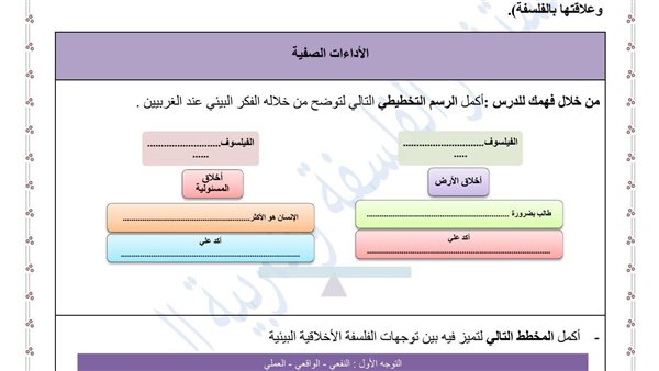 لطلاب أولى ثانوي.. أسئلة تقييم الأسبوع الثاني الفلسفة والمنطق بالاجابات
