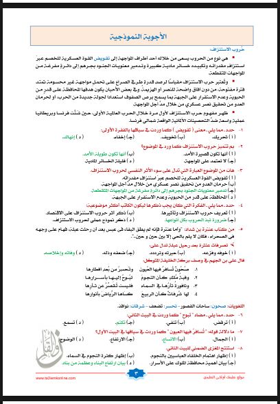 - مراجعات نهائيه امتحان اللغة العربية أولى ثانوي