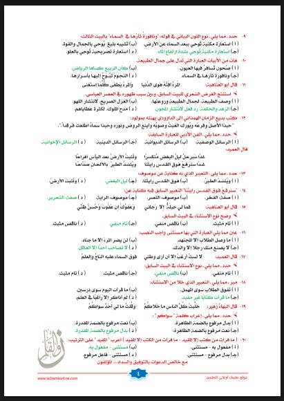- اللغة العربية مراجعات نهائية الصف الأول الثانوي