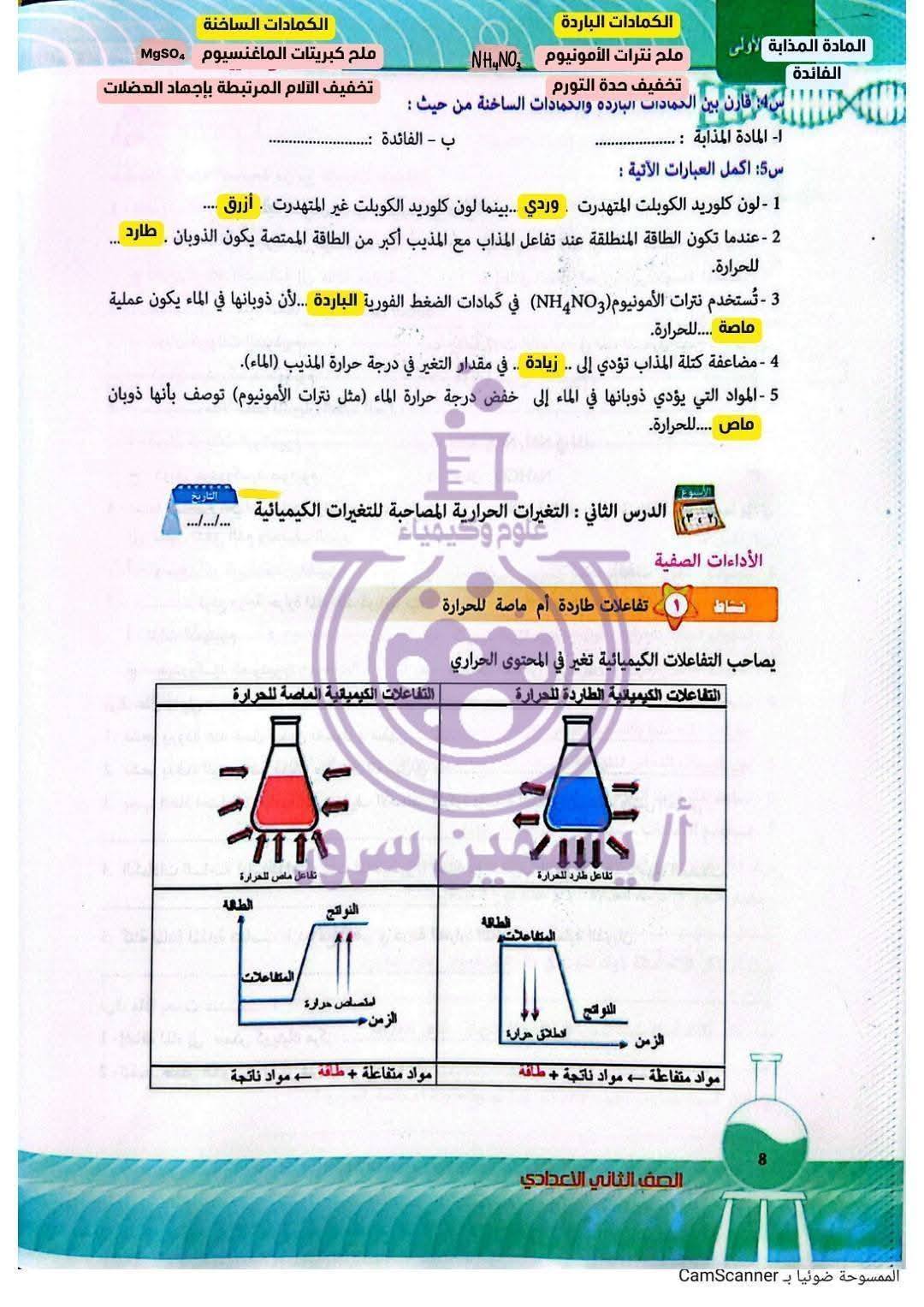- مذكرة العلوم ثانية اعدادي ترم ثاني وورد