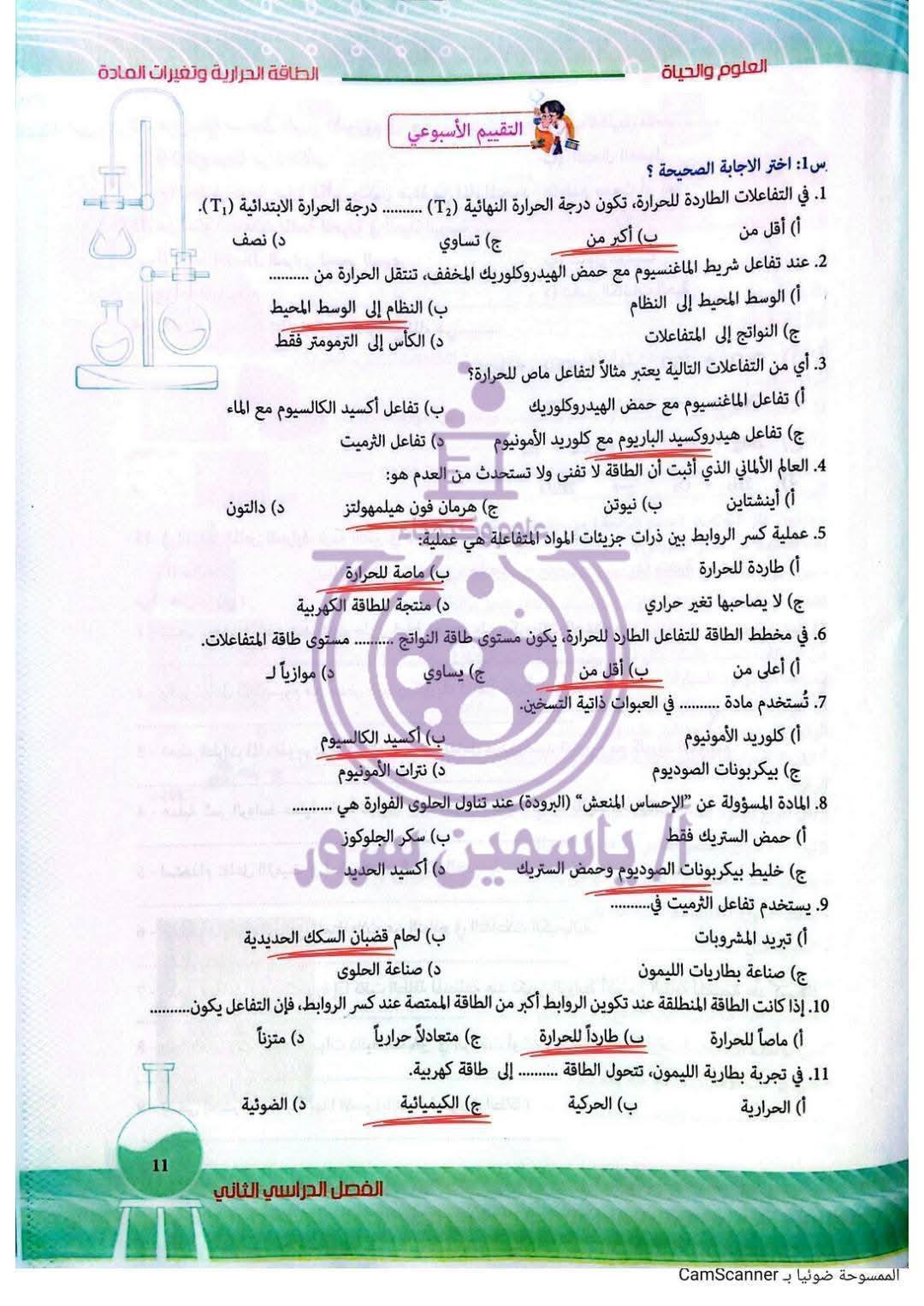 - بالاجابات تقييمات الأسابيع 1 و2 و3 في العلوم