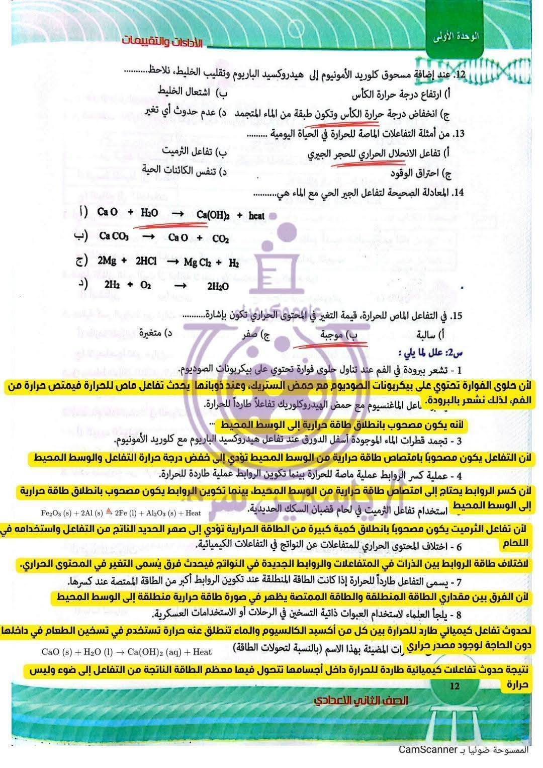 - مراجعات نهائيه امتحان العلوم ثانية إعدادي ترم ثاني