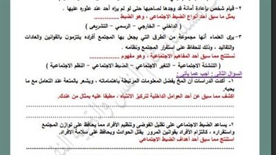 لطلاب الصف الثاني الثانوي.. أسئلة تقييمات الأسبوع الثالث علم النفس والاجتماع