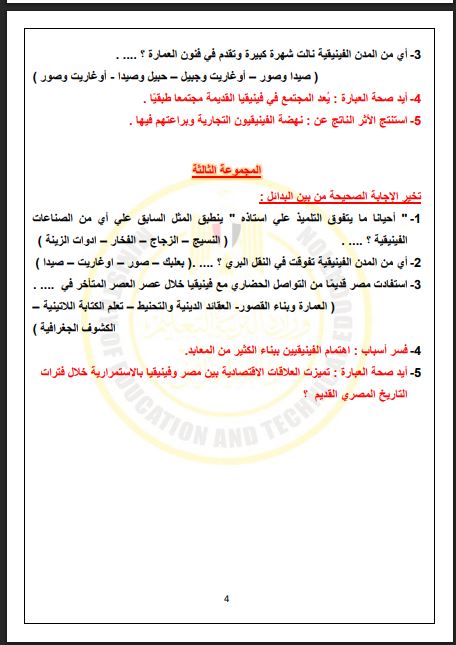- بالاجابات تقييم الاسبوع الرابع تاريخ ترم ثاني أولى ثانوي