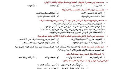 امتحان اللغة العربية عن مقرر شهر فبراير بالاجابات لـ الصف الأول الثانوي