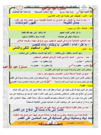 - مراجعات نهائيه امتحان اللغة العربية ثانية ثانوي