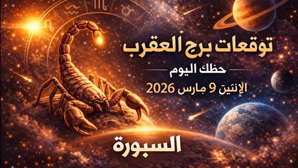 ابدأ اليوم بخطوة حاسمة، راقب تصرفاتك، قرّر بحكمة، وواجه كل مفاجأة بثقة، توقعات برج العقرب حظك اليوم الإثنين 9 مارس 2026 تمنحك القدرة على استغلال الفرص وتحويل الصراعات إلى إنجازات، تابع موقع السبورة للمزيد، ويمكنك الاطلاع على التقرير الكامل لمتابعة حظك اليوم وتوقعات الأبراج لجميع الأبراج على الصعيد المالي والمهني والعاطفي والصحي.