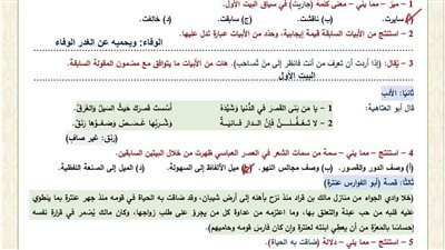امتحان اللغة العربية عن مقرر شهر فبراير بالاجابات لـ الصف الأول الثانوي