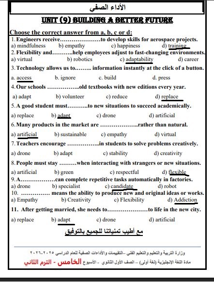 - مراجعة Unit 9 Building a Better Future أولى ثانوي
