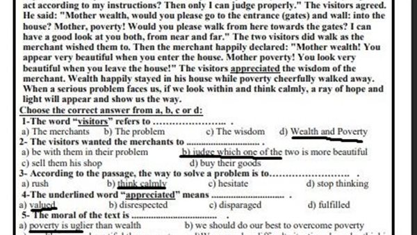 - حل تقييمات الوزارة إنجليزي أولى ثانوي