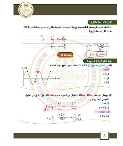 - إجابات نموذجية فيزياء الصف الثاني الثانوي