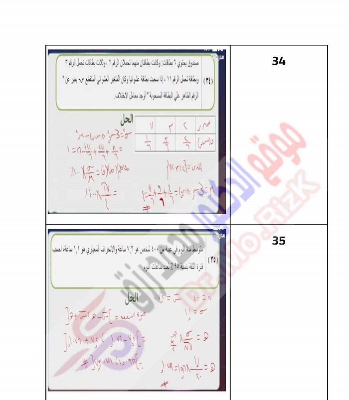 - أفضل مراجعة الإحصاء الثانوية العامة مع الحلول