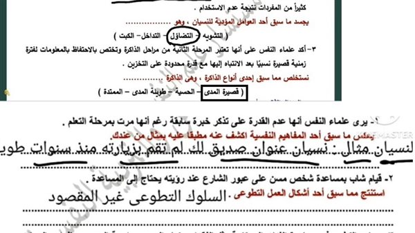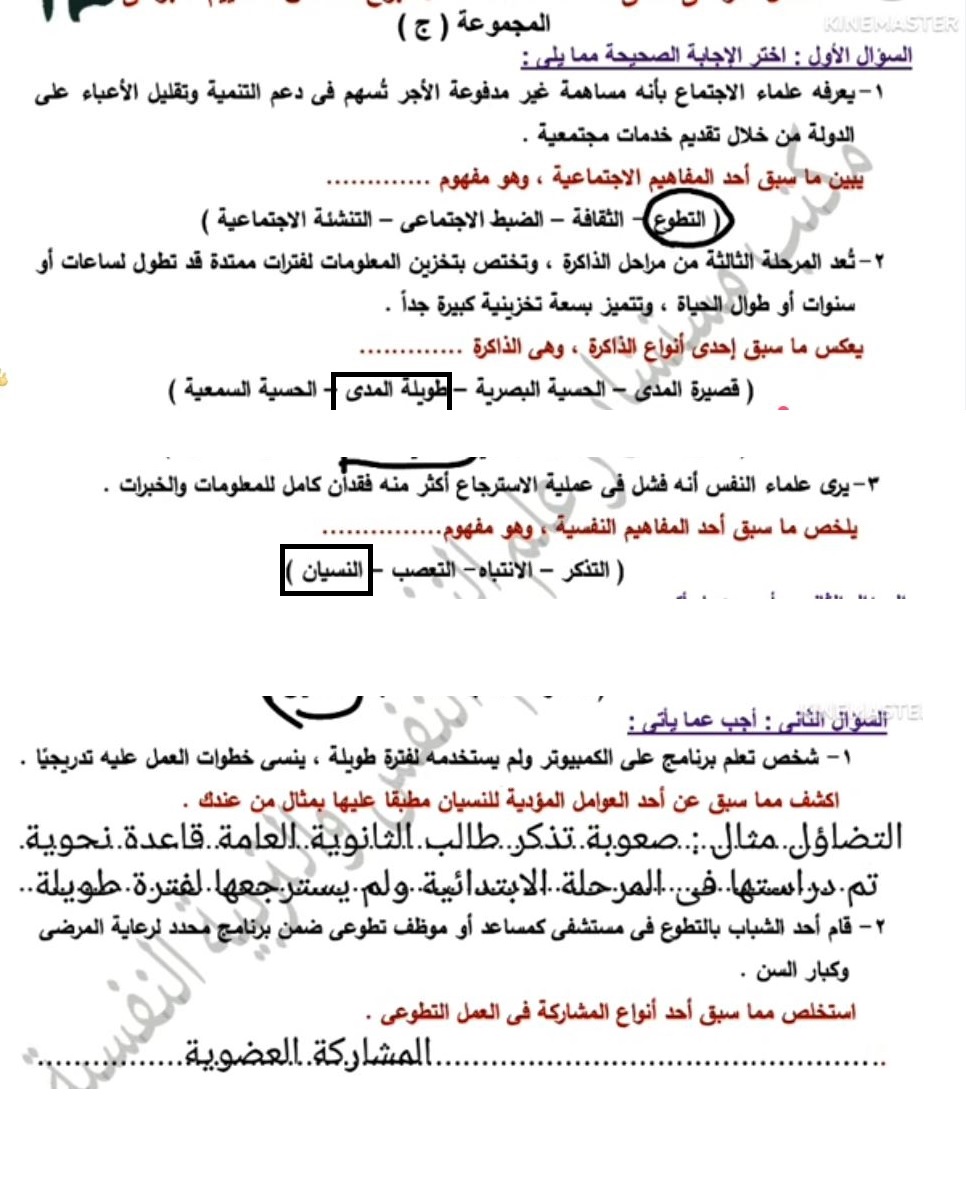- حل أسئلة علم النفس والاجتماع تانية ثانوي ترم ثاني