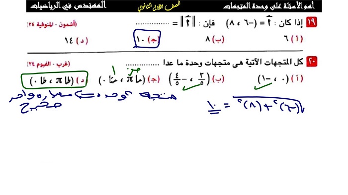 أبرز 20 سؤلا وإجابتها في الهندسة من امتحانات المحافظات للشهادة الإعدادية