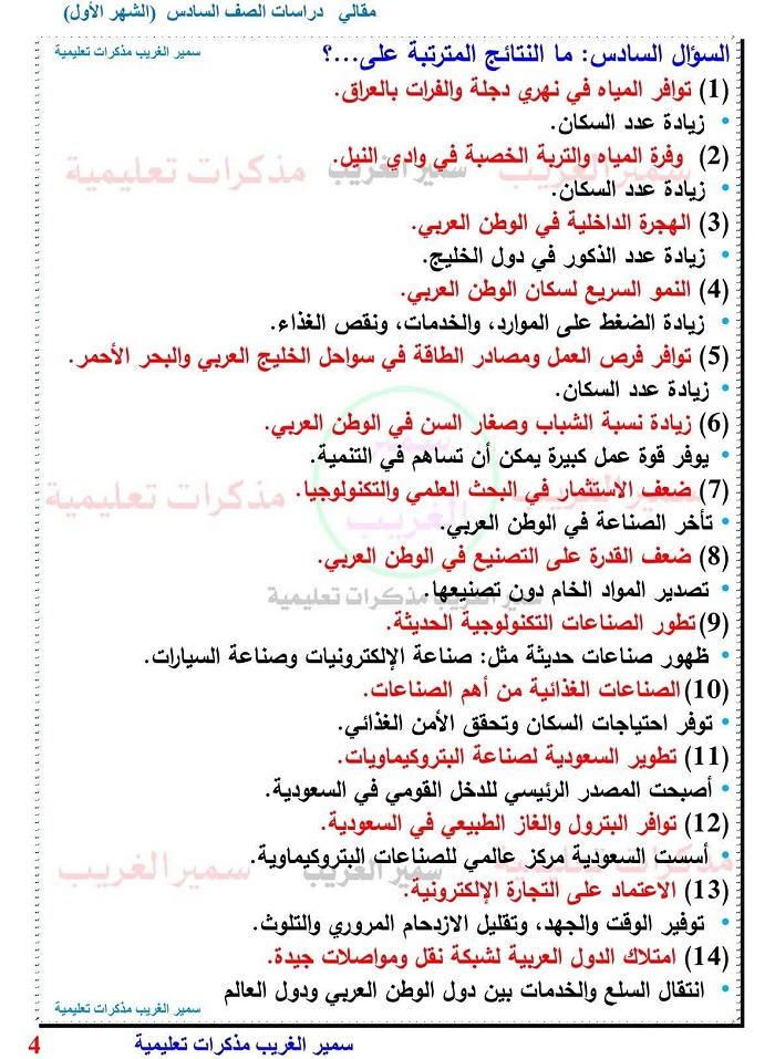 - أسئلة الجغرافيا والتاريخ سادسة ابتدائي