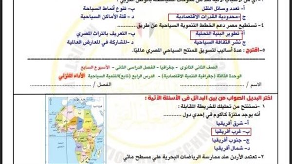 احصل على الحل النموذجي لتقييم الأسبوع السابع جغرافيا التنمية للصف الثاني الثانوي