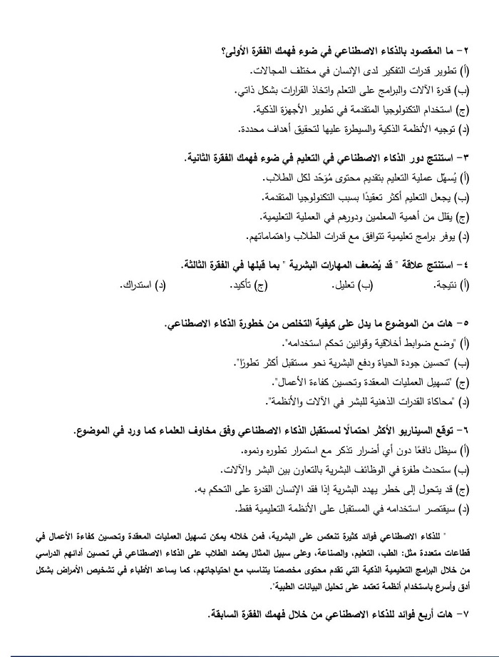 7- هات أربع فوائد للذكاء الاصطناعي من خلال فهمك للفقرة السابقة.