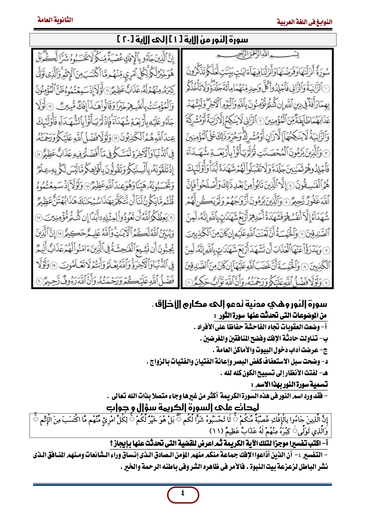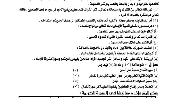 المراجعة النهائية في التربية الاسلامية 15 ورقة أوعى تفوتها للثانوية العامة 2026