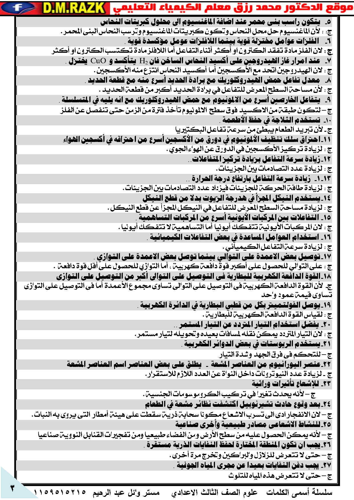 - تجميع أسئلة علوم الصف الثالث الإعدادي