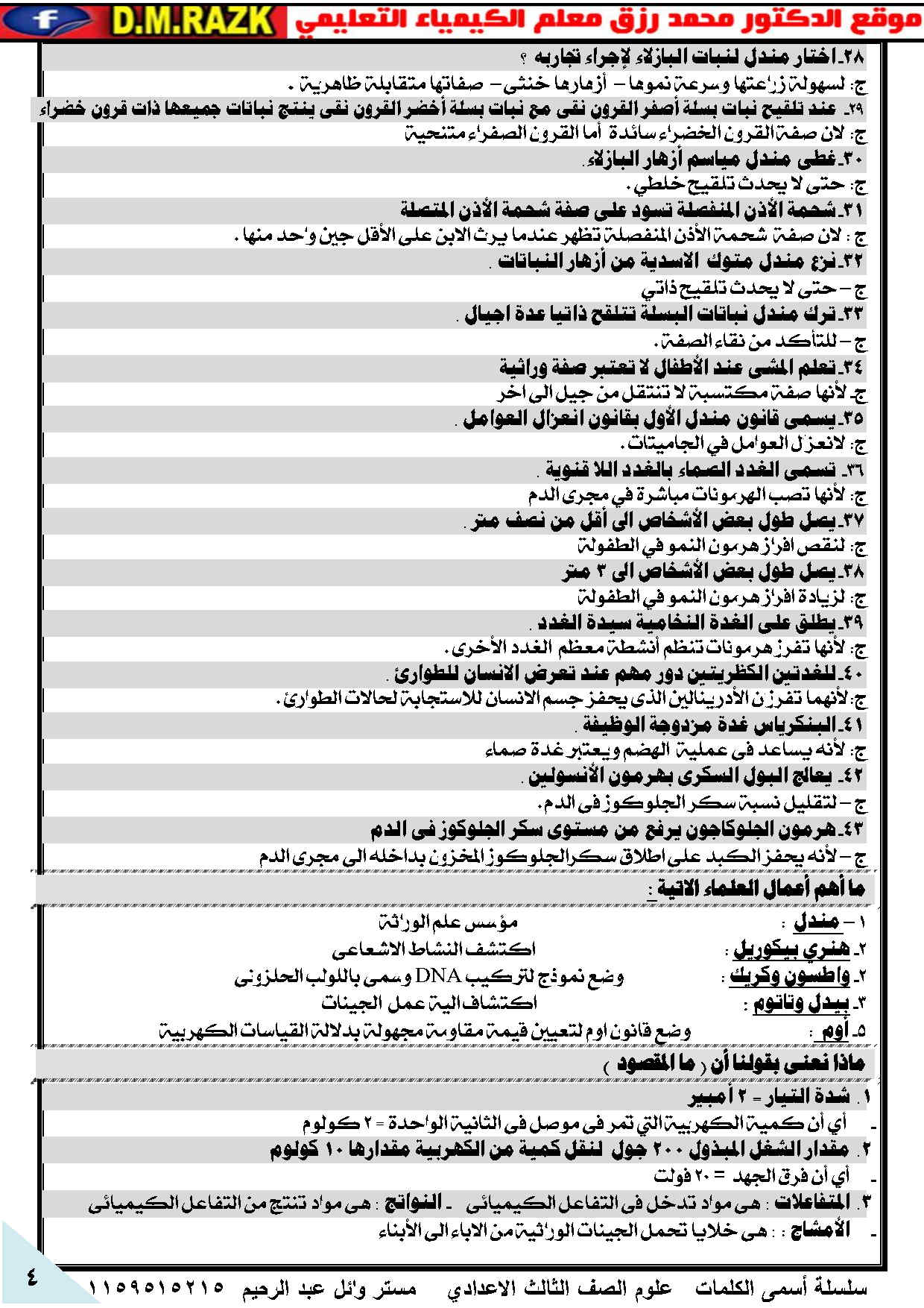 - ملخص علوم ثالثة إعدادي 200 سؤال بالإجابات