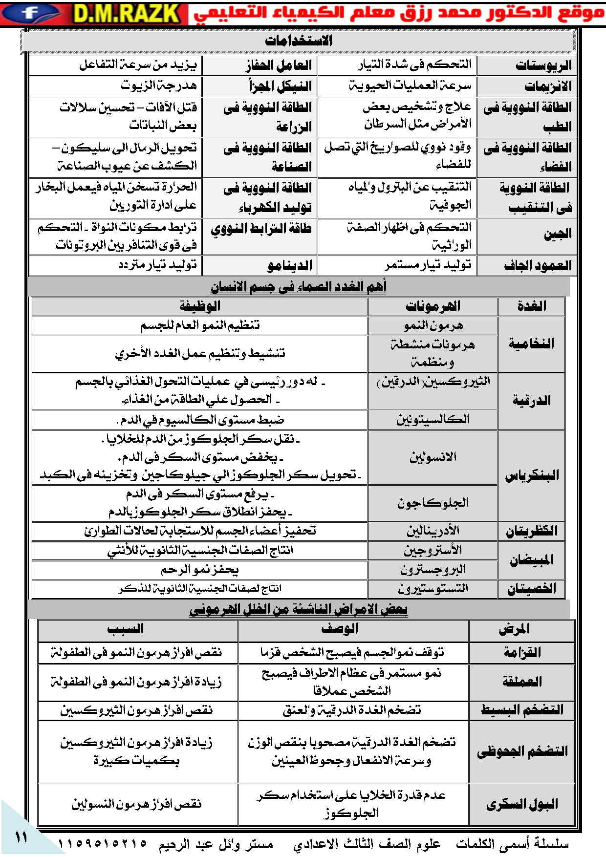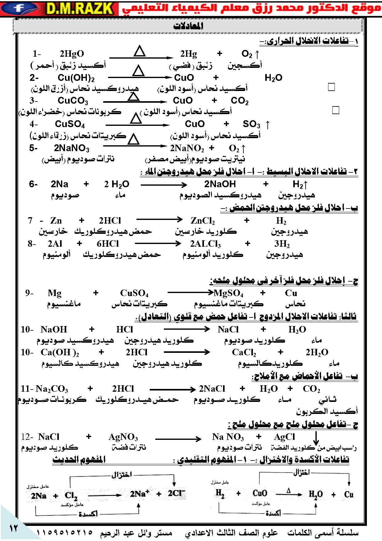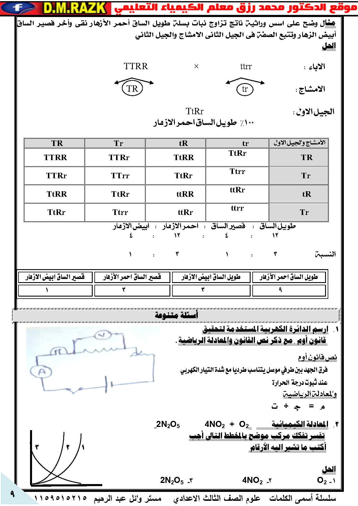 - مراجعة ليلة الامتحان علوم ثالثة إعدادي