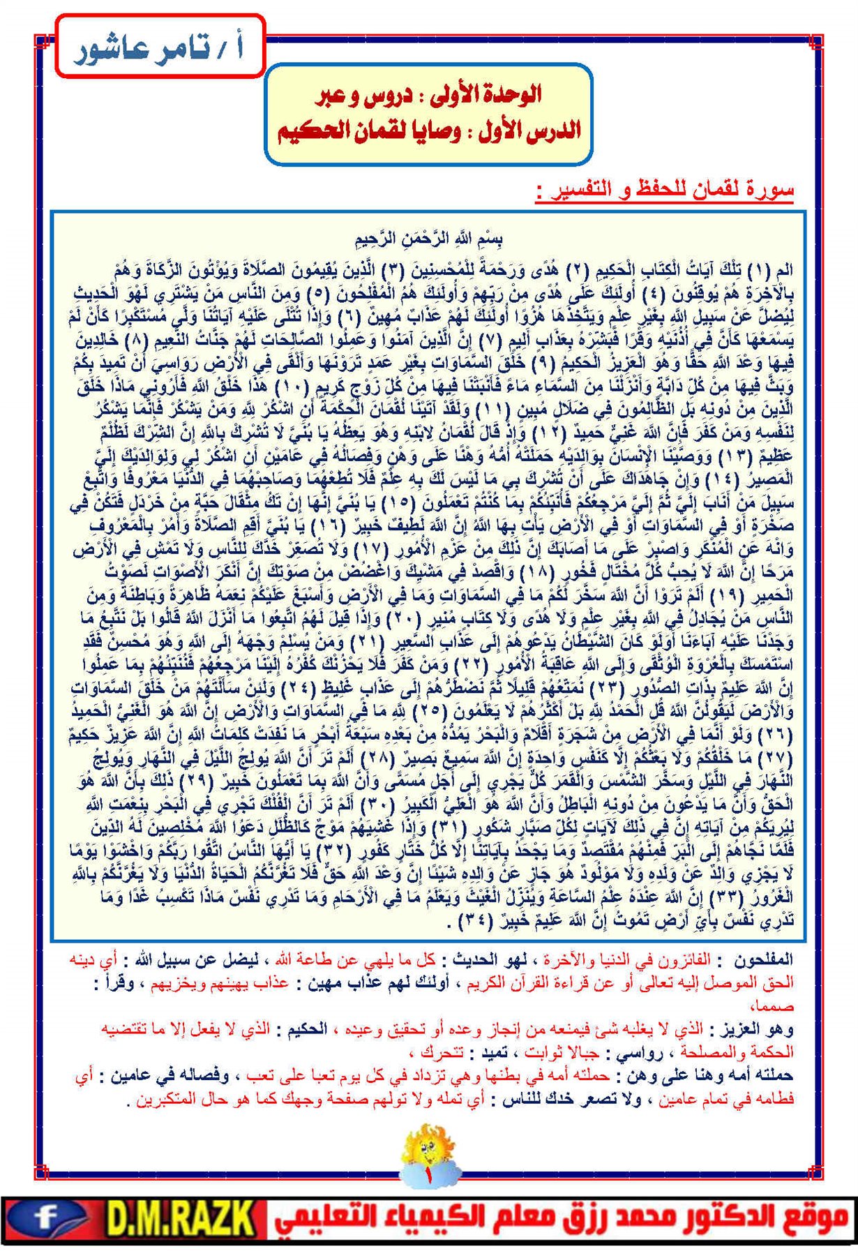 - تفسير آيات التربية الإسلامية إعدادي