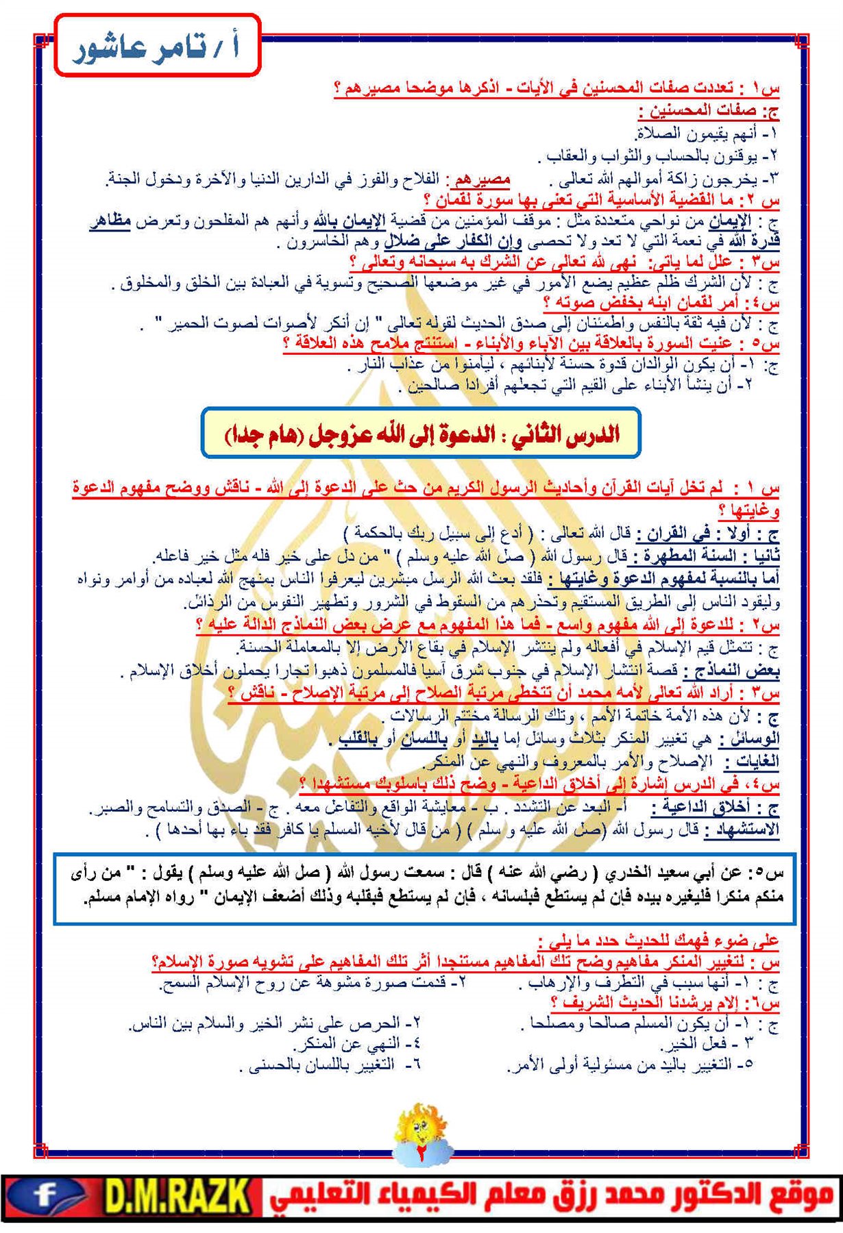 - مراجعة نهائية تربية إسلامية إعدادي