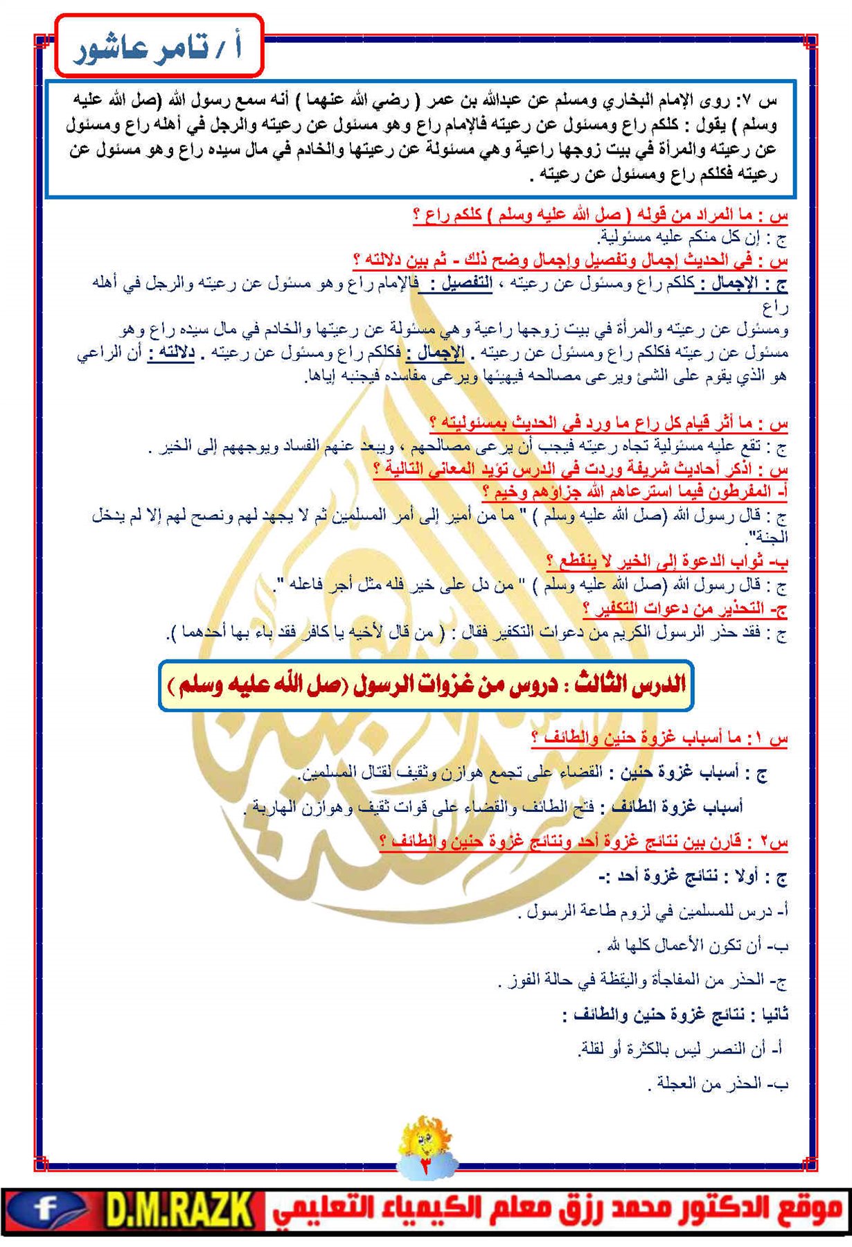 - أهم أسئلة التربية الإسلامية ثالثة إعدادي