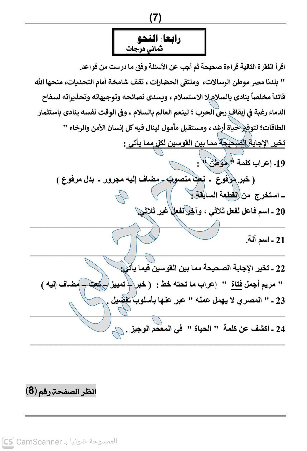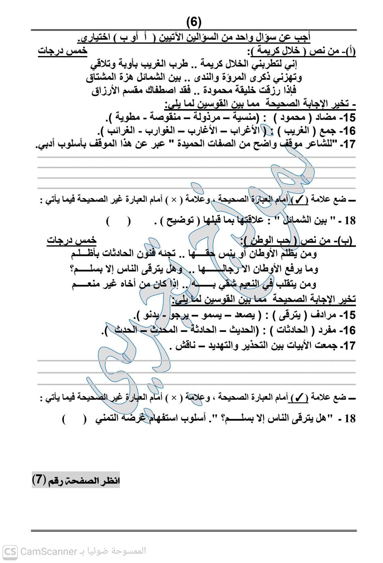 - امتحان العربي الصف الثالث الاعدادي