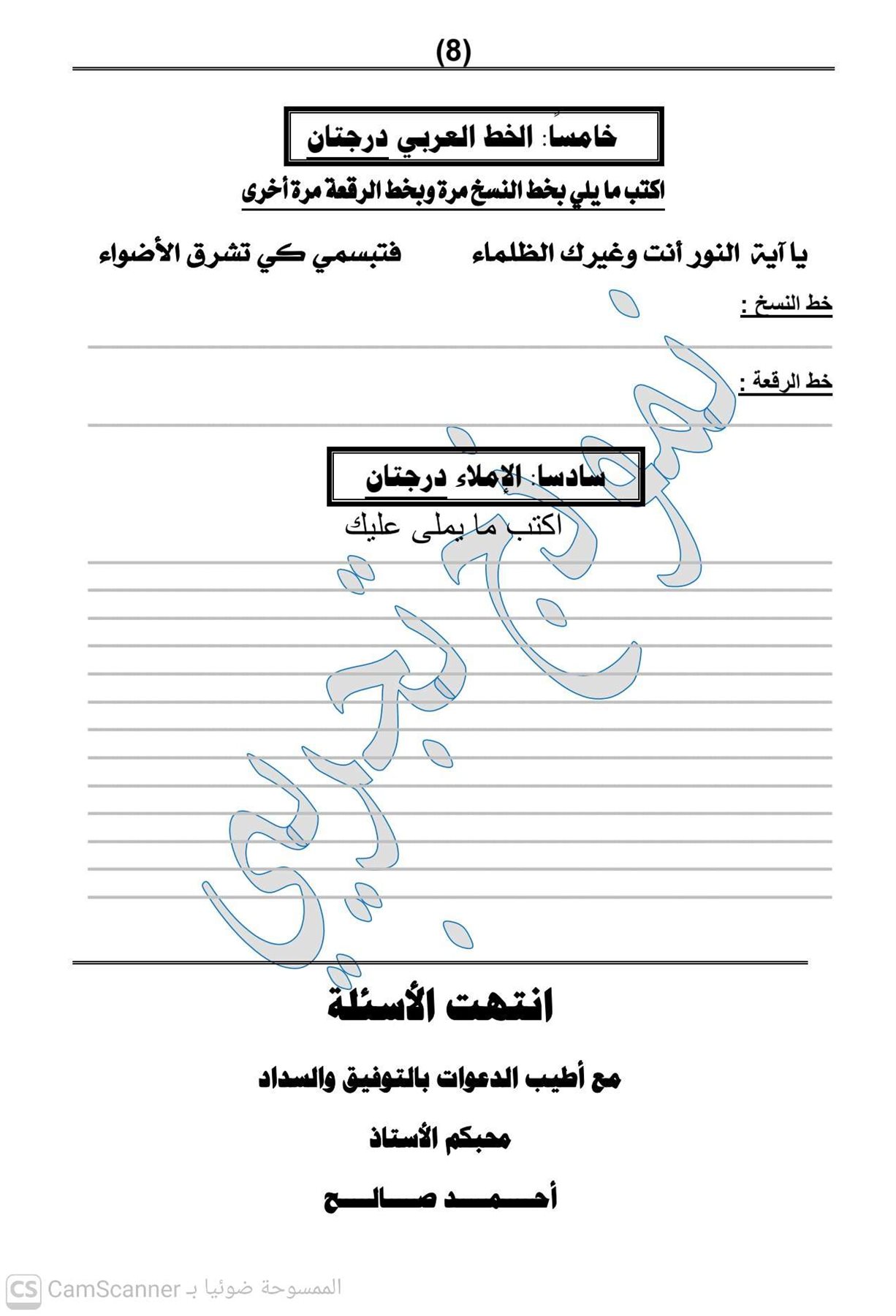 - نموذج لغة عربية لـ ثالثة إعدادي